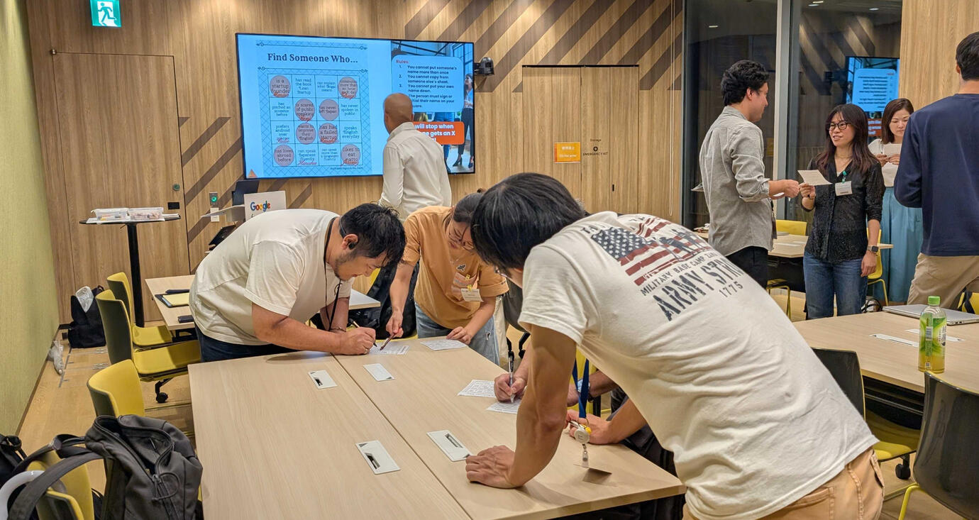 対面型のイベントでは、日本人と海外の起業家が英語も日本語も飛び交うリラックスした空間で実践的な英語を使いながら交流を行います。